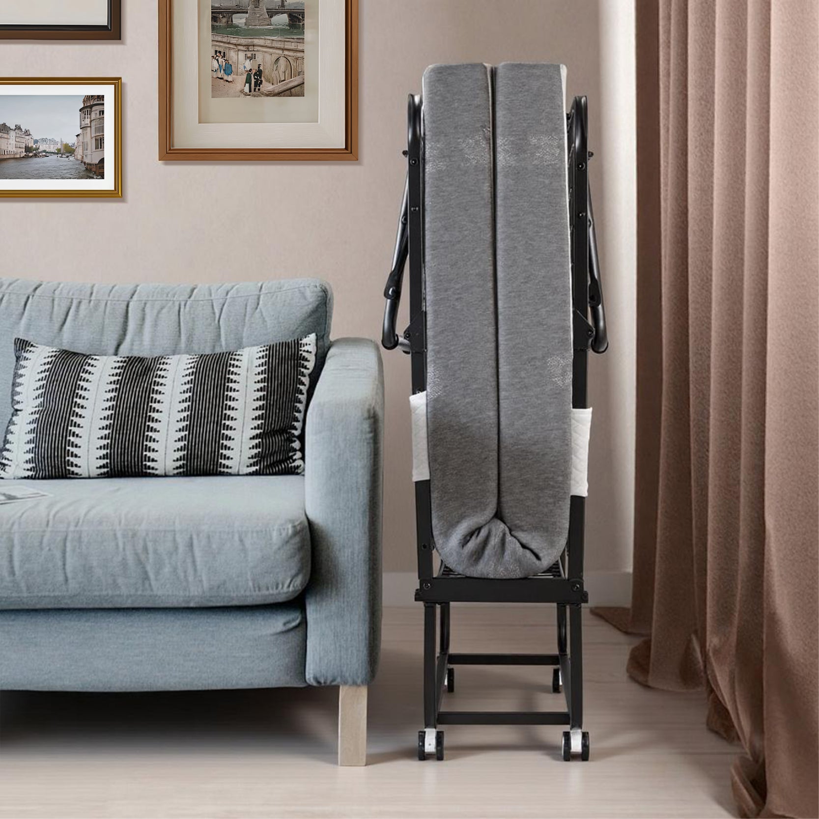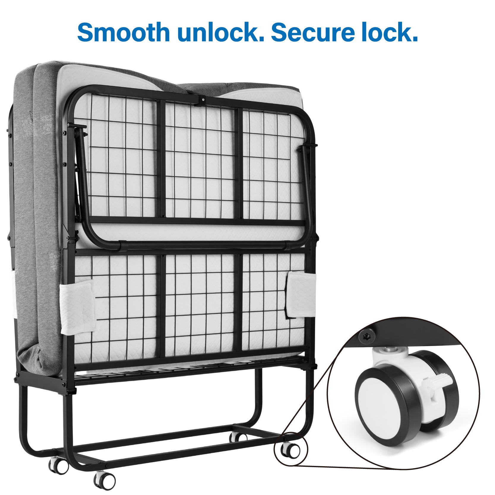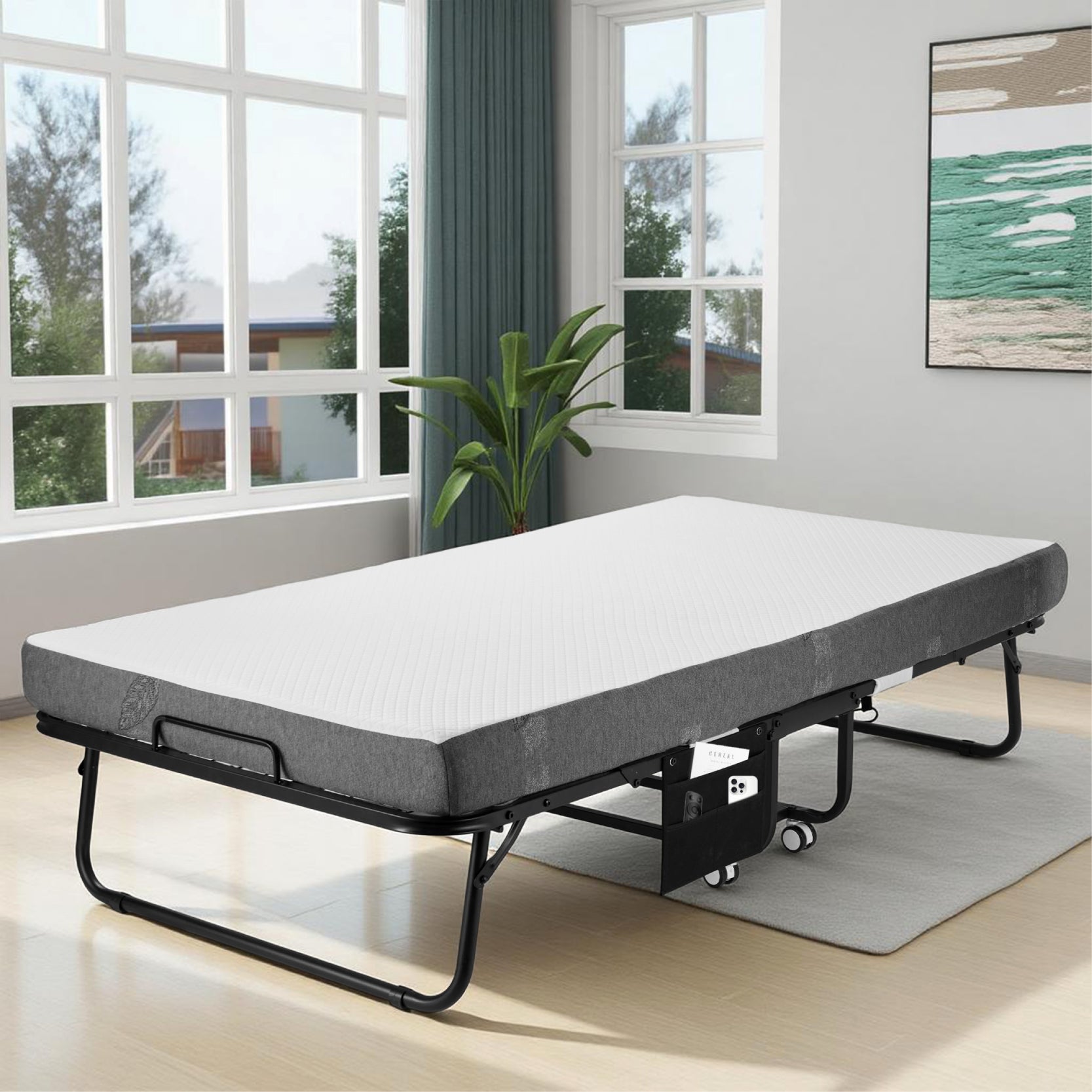 The Jengolee folding bed with mattress is equipped with smooth-rolling casters that can be locked in place, making it easy to move around as needed. Its folding design allows for efficient space utilization—perfect for guest rooms, offices, or small apartments.